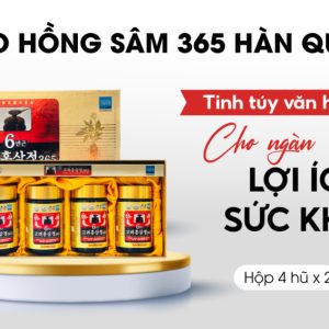 Cao hồng sâm 365 Hàn Quốc mang nghĩa tượng trưng cho 365 ngày trong một năm khỏe mạnh. Sản phẩm có hương vị đậm đà đặc trưng của hồng sâm, giúp hồi phục sức khỏe nhanh chóng, được sử dụng với mọi lứa tuổi và rất thuận tiện chăm sóc sức khỏe cả gia đình.