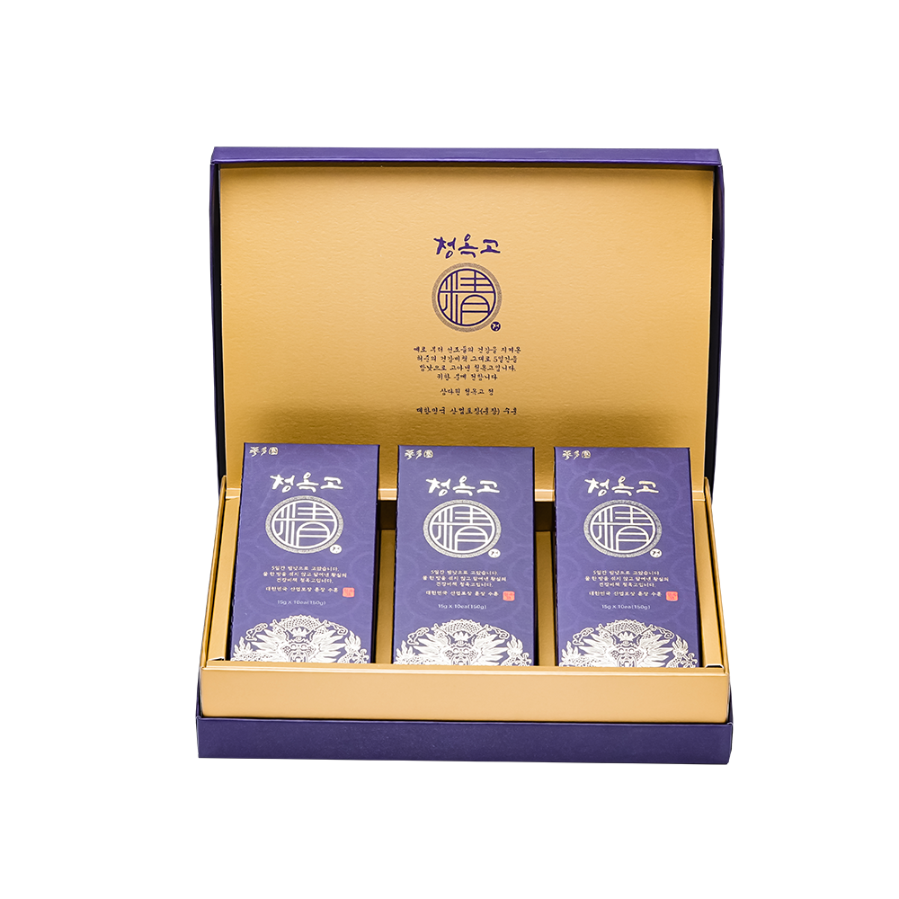 5% Hồng sâm Hàn Quốc 6 năm tuổi, 10% nấm linh chi Bokryeong, 39% rễ địa hoàng Hàn Quốc, 46% mật ong Jeju Hàn Quốc.